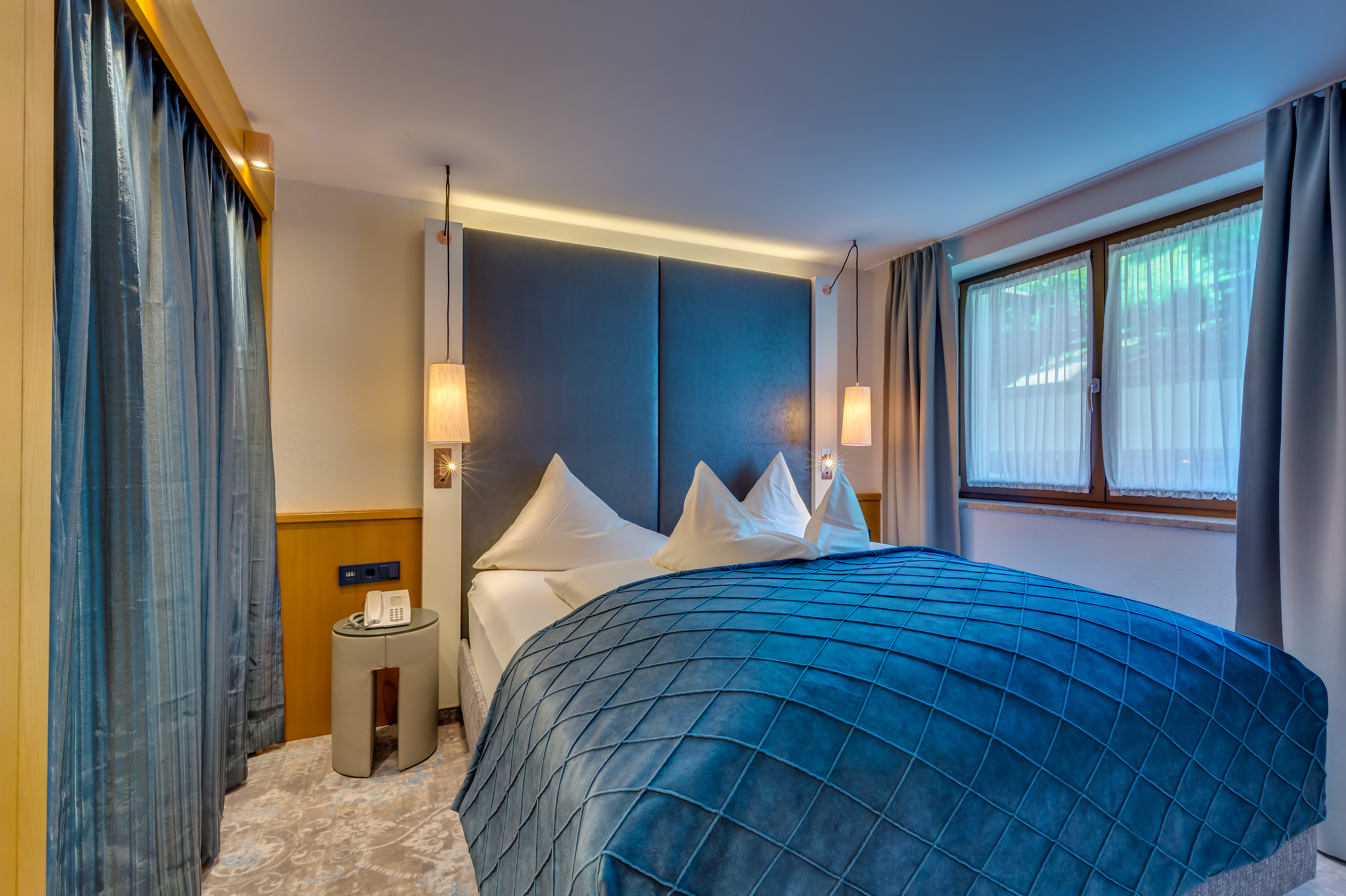 Familienzimmer (48 m²) mit 2 getrennten Schlafzimmern (4 Betten) und 1 Zusatzbett im Wohnraum